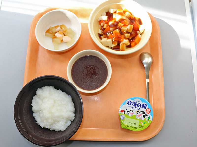 入院中の食事は治療の一環としての役割を担っており、患者様に合わせた食形態、食事内容を提供することで、治療のサポートを行っています。
